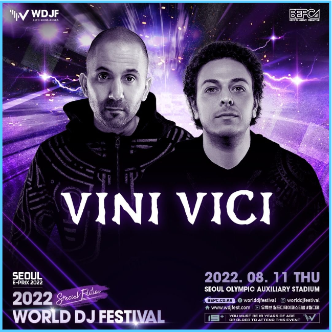 2007년 서울시 페스티벌 일환으로 시작해서 올해로 16주년을 맞이 하는 월드 디제이 페스티벌 EDM을 좋아하시는 분들이라면 아마 모르시는분이 없을거 같습니다. 화려한 라인업으로 가득찬 2022 WDJF International DJ 글로벌 TOP DJ들의 화려한 공연! 8월 11일부터 8월 13일 까지 또 한 번의 전율을 기대해 주세요!!