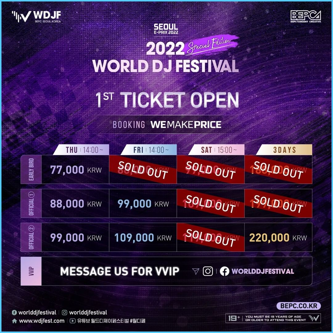 2022 월드디제이 페스티벌의 일정 및 티켓오픈, 티켓가격, 예매방법, 라인업을 소개해드렸습니다. 가슴이 마구마구 뛰고 스트레스가 싹 날아가는 그런 공연이 예상 되네요, 관심있으신 분은 위메프 회원가입 하시고 꼭 예매에 성공 하시길 바랍니다.!!