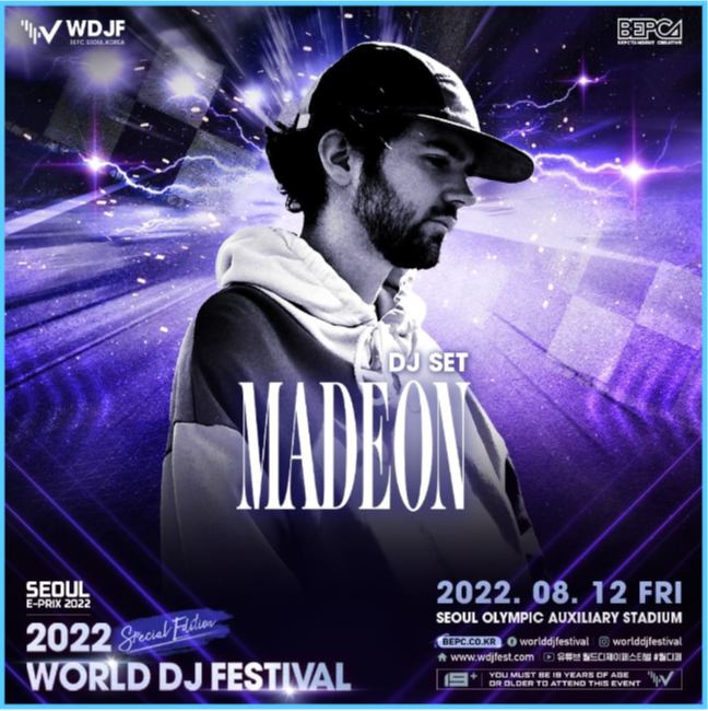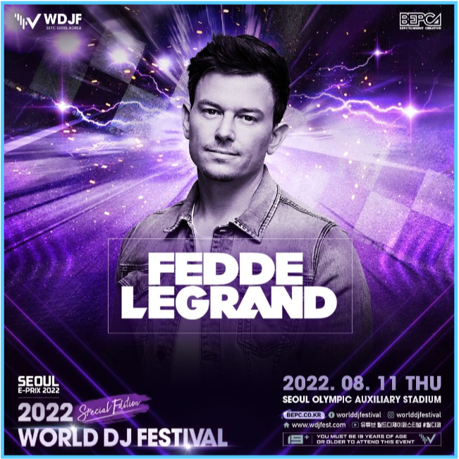 - 이번 공연은 세계적 규모의 전기차 경주대회인 포뮬러-E와 함께 하는 스페셜 버전으로 진행된다고 하여 더욱 큰관심을 받고 있는거 같습니다. 또한 월디페는 국내 최대야외음악 축제인 워터밤, 서울파크뮤직 페스티벌을 기획하고 제작하는 BEPC TANGENT(비이피씨탄젠트)의 EDM대표 페스티벌 입니다.